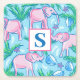Preppy Blue Pink Green Elephant Monogram Square Paper Coaster