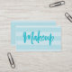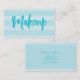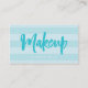 This stylish business card features a preppy stripes background in shades of blue and the word "Makeup" in blue brush script font. It is ideal for makeup artists / makeup stylists / makeup consultants / cosmetologist.