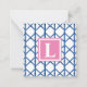 Preppy Blue Trellis Bamboo Pattern Monogram Card