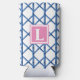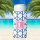 Preppy Blue Trellis Bamboo Pattern Monogram Seltzer Can Cooler