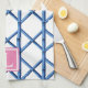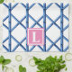 Preppy Blue Trellis Bamboo Pattern Monogram Tea Towel