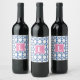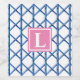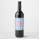 Preppy Blue Trellis Bamboo Pattern Monogram Wine Label