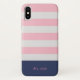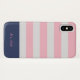 Preppy iPhone case with blush and white stripes, on the bottom a navy blue border as a monogram holder. Personalise with your very own monogram in elegant sans serif font and choose between two colours. This phone case can be paired with other accessories so check out our store for more items from our ''Nautical Stripes'' collection.