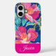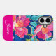 Make a bold statement with this preppy bright floral personalized iPhone case. Featuring vibrant pink florals set against a rich navy background, this eye-catching design is finished with a hot pink name panel for a fun, stylish pop of color. Personalize it with your name to create a phone case that’s uniquely yours.