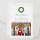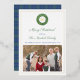 ** Photo credit: Photography © Storytree Studios, Stanford, CA ** An elegant Merry Christmas / Happy Holidays photo card design featuring a watercolor boxwood wreath with space for a single letter monogram. The watercolor elements were originally handpainted by me in watercolors onto 100% cotton paper before being scanned and arranged / styled digitally (the crest shape is by another artist). The reverse side features a blue and green Scottish Tartan pattern (or you can add another of your photos to the reverse instead.