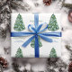 Preppy Christmas Tree Green Blue White Holidays Wrapping Paper