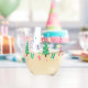 Celebrate the season with this festive glass featuring a pattern made up of whimsical Christmas trees, holiday gifts, rainbow candy canes and red and pink stockings. This bright and colourful pattern is sure to make the season merry.
