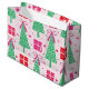 Preppy Christmas Trees with Pink Bows and Gift Box Large Gift Bag