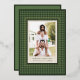A preppy Christmas photo card with green houndstooth pattern, space for one photo on the front, and a longer message on the back. The colour of the houndstooth pattern can be changed yourself to any colour you wish!