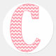 Preppy Classic Pink Chevon Letter C Monogram Round Sticker
