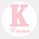 Preppy Classic Pink Chevon Letter K Monogram Round Sticker