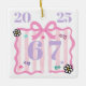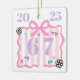 Preppy Coquette 6–7 Pink Stripe Bow Trend Year Ceramic Ornament