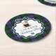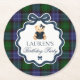 Preppy Coquette Bow Bear Plaid Birthday Round Paper Coaster