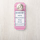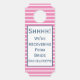Perfectly chic and customisable bright pink and white seersucker striped nautical Shhhh we're recovering door hanger for bachelorette party guests