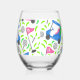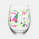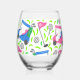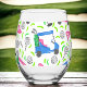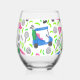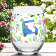 Preppy Golf Pink Blue Golf Cart Pattern Stemless Wine Glass