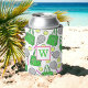 Preppy Green Pink Tennis Racquet Bag Balls Initial Can Cooler