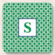 Preppy Green White Link Pattern Navy Monogram Coaster