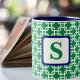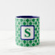 Preppy Green White Link Pattern Navy Monogram Two-Tone Coffee Mug