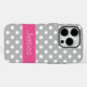 A cute grey polka dot design with pink is featured on this preppy iPhone case. Easily personalise with your name!