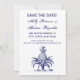 Preppy Heraldic Blue Pineapple Coat of Arms Crest Invitation