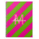 Preppy Hot Pink & Lime Green Striped Monogram Spiral Notebook