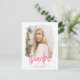 Preppy Hot Pink Script Photo Graduation Thank You Postcard