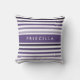 Preppy Large Striped Pattern With Name in Purple Cushion
