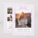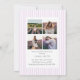 Celebrate your graduate with this soft and elegant lavender preppy graduation photo collage announcement card. Featuring a delicate pastel stripe background and ribbon frame detail, this design includes a front photo display and a multi-photo collage layout on the back to highlight your favorite memories.