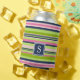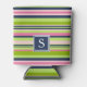 Preppy Lime, Pink and Navy Stripe Monogram Can Cooler