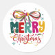 Preppy Merry Christmas Coquette Bow Xmas Classic Round Sticker