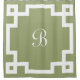 A white Greek key border frames a monogram in white script font on a thyme green background. Easily customise it with your own initial.