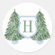 Preppy Monogram Pine Tree Christmas Holidays Classic Round Sticker
