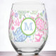 Preppy Monogram Pink Blue Sea Turtles Stemless Wine Glass