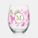 Preppy Monogram Pink Cheetah Pink Background Stemless Wine Glass