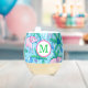 Preppy Monogram Pink Elephant Palm Tree Stemless Wine Glass