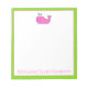 This cute notepad features a preppy pink whale on white with a border of bright green. Personalise with your choice of name or special text.