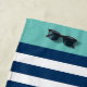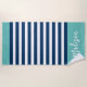 Preppy Nautical Stripe Navy Turquoise Calligraphy Beach Towel