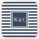 Preppy Navy Blue and White Stripe Monogram Square Paper Coaster