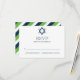 Navy blue and lime green Bar and Bat Mitzvah rsvp card featuring a bold Star of David that creates a wonderful focal point on this contemporary rsvp. The back side features navy blue, white and lime green stripes. Customise this response card online to suite your needs for your boy and girl's coming of age ceremony and see it right away. If you love this Bar and Bat Mitzvah rsvp card design and wish to purchase coordinating cards, please visit my store at www.zazzle.com/vginvites Victoria is a professional invitation designer in Jupiter, FL near West Palm Beach.