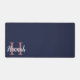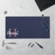 Cute Navy Blue Pink Desk Mat with Initial Monogram and Name