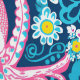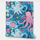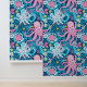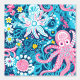 A seamless preppy hand-drawn pattern featuring pink and white octopuses surrounded by white, blue, and yellow flowers, set against the deep blue ocean floor. The design combines whimsical sea creatures with vibrant floral elements, creating a charming and lively underwater scene.