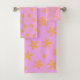 Preppy Orange Pink Hippie Flower Pattern Bath Towel Set