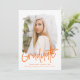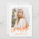 Celebrate your graduation with these trendy photo announcements featuring a unique textured mask frame around the graduate's photo and "Graduate" in a bold orange handwritten script. Personalise the design by adding the graduate's name, school name, and graduation year for a customised touch. These stylish announcements are perfect for both high school and college graduates, making them a memorable way to share your achievement with family and friends.