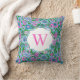 Preppy Palm Beach Print Pink Green Floral Monogram Cushion
