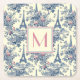 Preppy Paris Toile Pink and Blue Monogram Square Paper Coaster