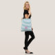 Preppy Tote bag with light blue background and white stripes. Custom three part monogram is written in serif font which can be personalised.