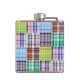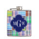 Preppy Patchwork Madras Navy Quatrefoil Monogram Hip Flask