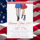 Celebrate America’s 250th birthday in style with this preppy and patriotic party invitation featuring a fashionable couple dressed in red, white, and blue. The design features a charming man in flag-print pants and a blue blazer, holding a beer, with his arm around a woman in a red dress and blue heels, creating the perfect blend of fun, fashion, and Americana spirit.