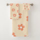 Preppy Peach White Hippie Flower Pattern Bath Towel Set