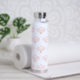 This tumbler has a watercolor pattern of pink gingham pickleball paddles on the front and back.
